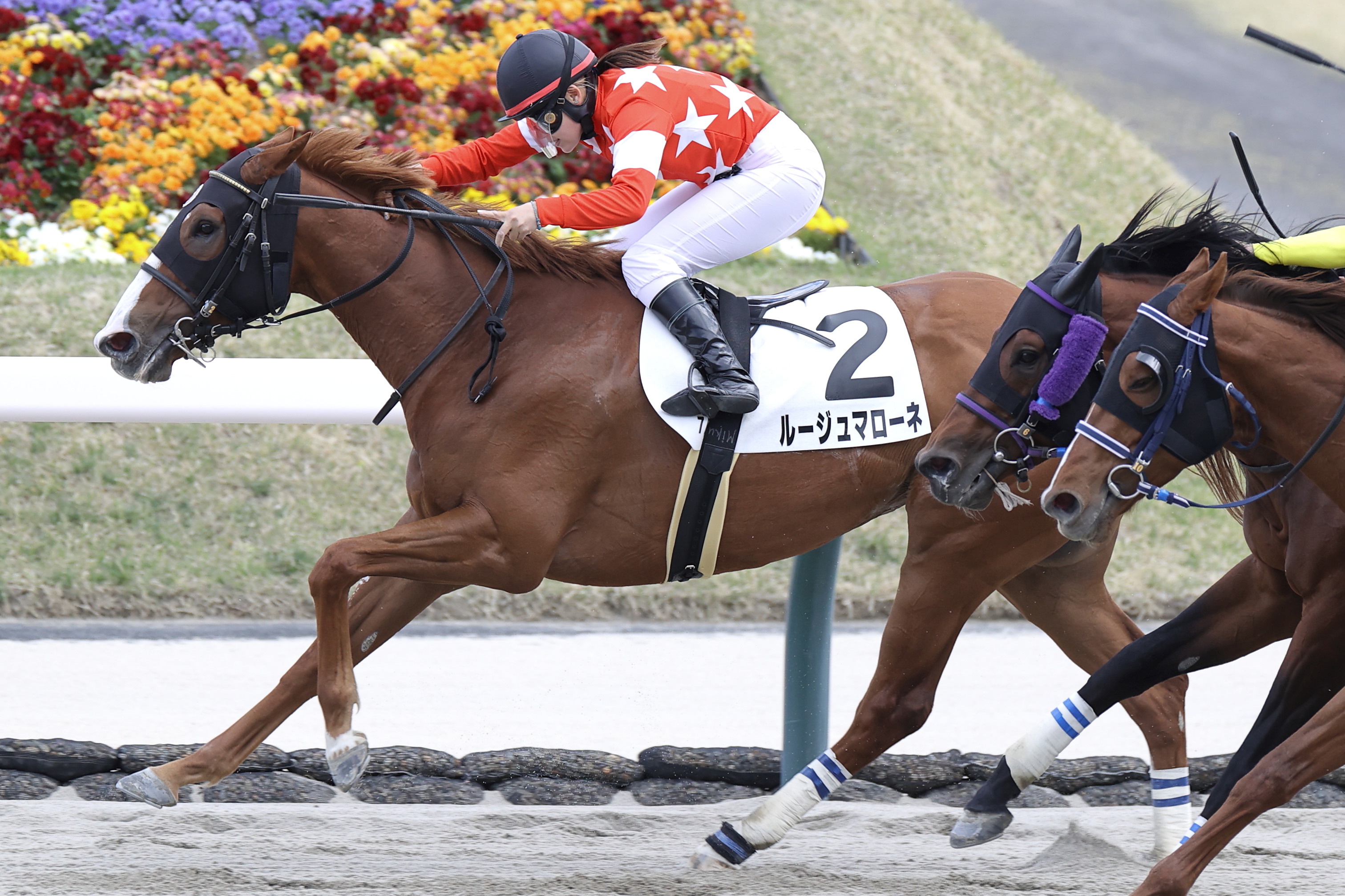 差なくゲートを飛び出し、ハナを譲らない積極果敢な姿勢で先手を取りきる逃げ戦法。3、4コーナーで外から後続の2頭に早めに詰め寄られたものの、直線での激しい追い比べで二枚腰を発揮して人気馬たちを力強く振り切ってみせた。思い起こせば、このルージュマローネが東京サラブレッドクラブ現4歳世代の一番星。その札幌での初勝利から1年8ヶ月、紆余曲折を経ての待ちに待った2勝目だけに感慨もひとしおだ。単勝29.2倍の9番人気と下馬評こそ高くなかったが、小林美駒騎手の真骨頂でもある外連味のない先行策と、なるべく砂を被らずスムーズにレースを運びたい本馬のパーソナリティがひとつの勝利に向かってぴったりとマッチした形。ハミをリングビットに変更した効果も相まって、人馬ともに互いの長所を存分に引き出し合ったシナジーに結果が伴った。クラスが上がって相手はさらに強化されるが、自身の持ち時計を大幅に更新できた今回のレースを糧として、今後もあっと言わせる激走で我々を魅了し続けてもらいたい。