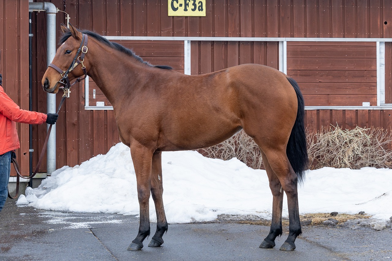 手塚貴久調教師「6月の東京デビューをイメージして、本馬の早期移動を決めました。もちろん上々の進捗状況にあること、また動きの質や完成度の高さを加味してのもので、このままトラブルなくメニューを継続していけることを条件に、3月中旬頃のトレセン入厩を予定したところです。順調に調教強度を上げていくことができており、馬体はより競走馬らしく洗練されてシャープさも増してきました。動きを見ても水準以上と思わせるものがありますからね。トレセンでの再会が楽しみです」