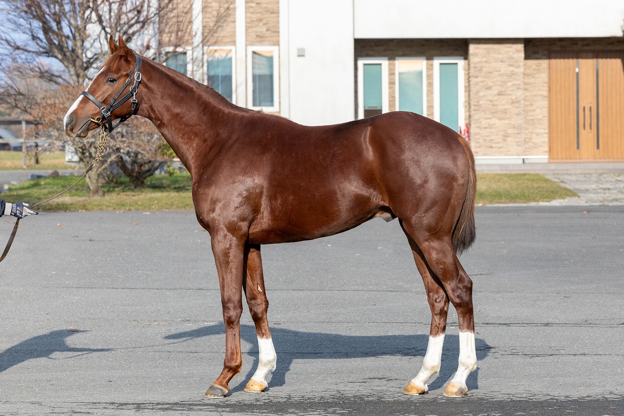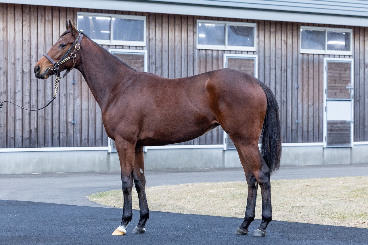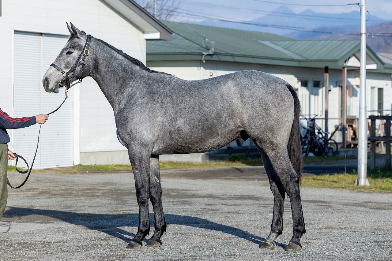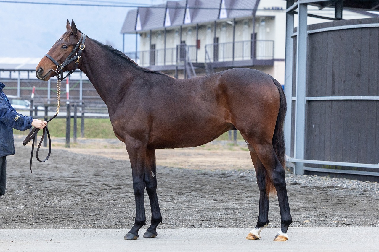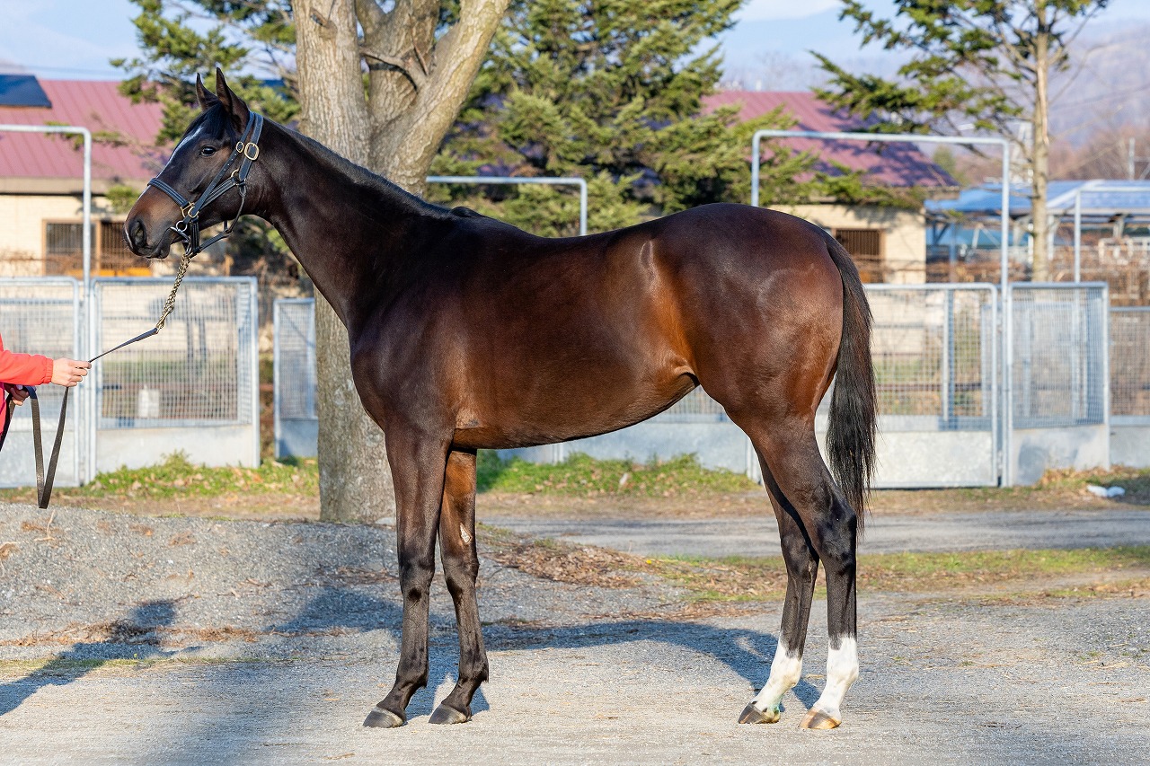 徐々にペースを上げている坂路調教、低酸素環境下でのトレッドミルといったトレーニングをおこなっています。坂路では上がり3ハロンを17秒台前半で駆け上がる時計も出しましたが、少し焦って走る面はあるものの、身のこなしの柔らかい、伸びやかな動きを見せています。やや細身ですが、脚が長く、胴伸びもある、父産駒らしい体型の持ち主。飼い葉喰いに問題はなく、気性も素直です。調教を重ね、腰がパンとしてくれば、走りの中身も、より濃くなってくるはずです。 -