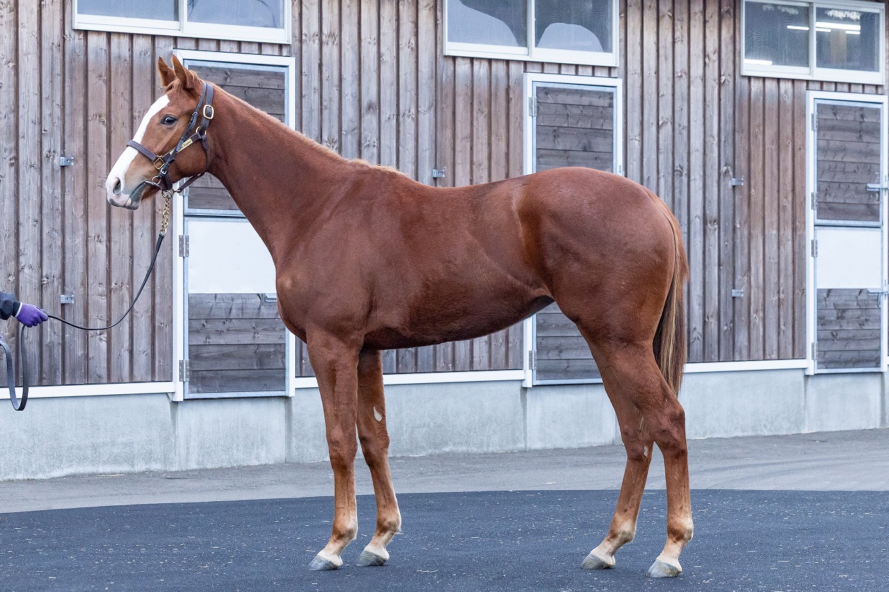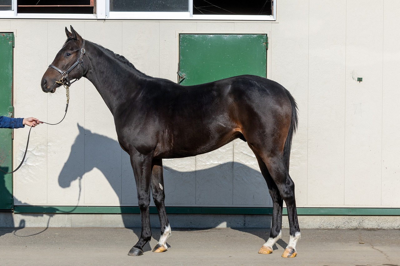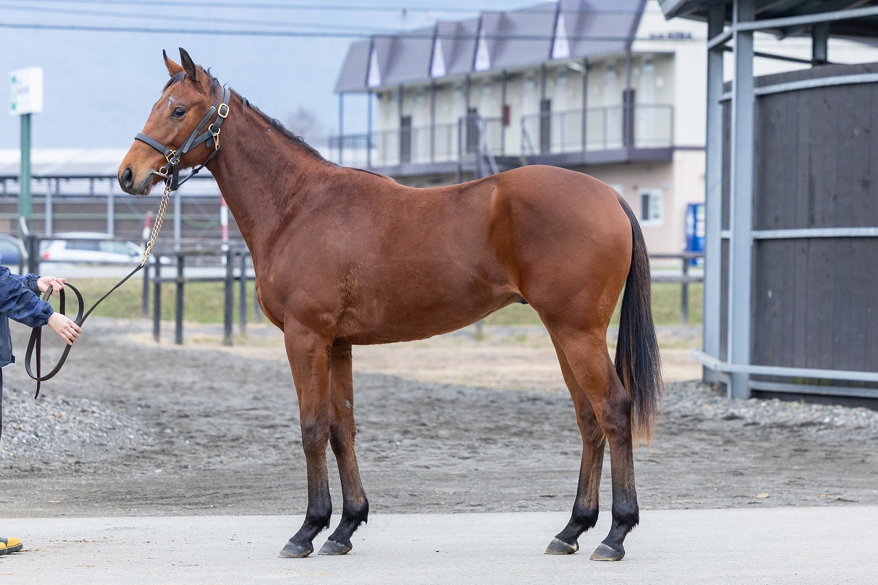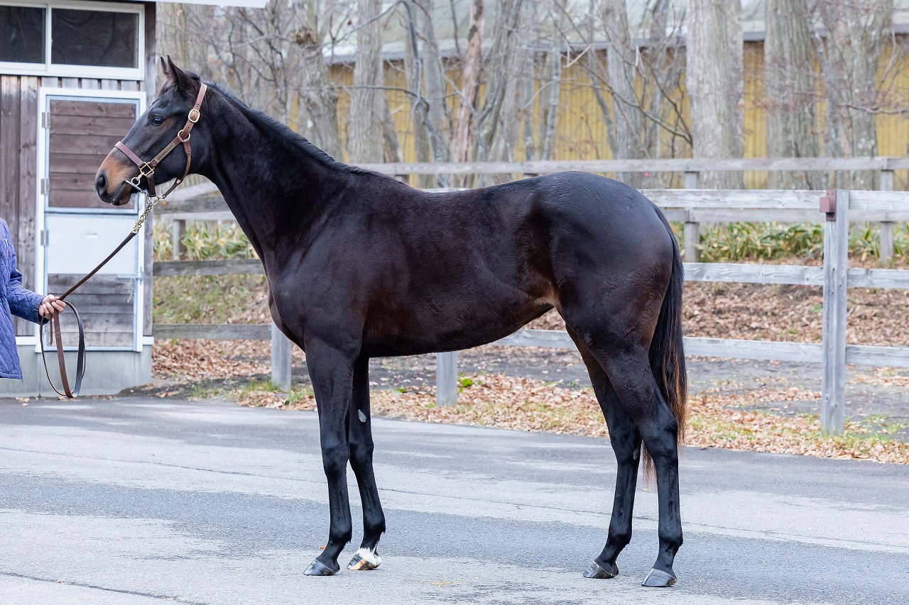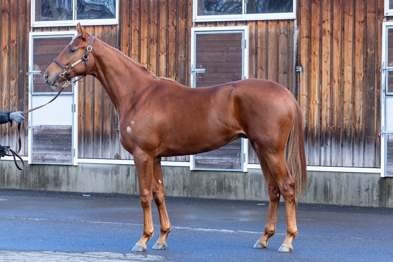 徐々にペースを上げている坂路調教、低酸素環境下でのトレッドミルといったトレーニングをおこなっています。坂路では上がり3ハロンを17秒台前半で駆け上がる時計も出しましたが、少し焦って走る面はあるものの、身のこなしの柔らかい、伸びやかな動きを見せています。やや細身ですが、脚が長く、胴伸びもある、父産駒らしい体型の持ち主。飼い葉喰いに問題はなく、気性も素直です。調教を重ね、腰がパンとしてくれば、走りの中身も、より濃くなってくるはずです。 -