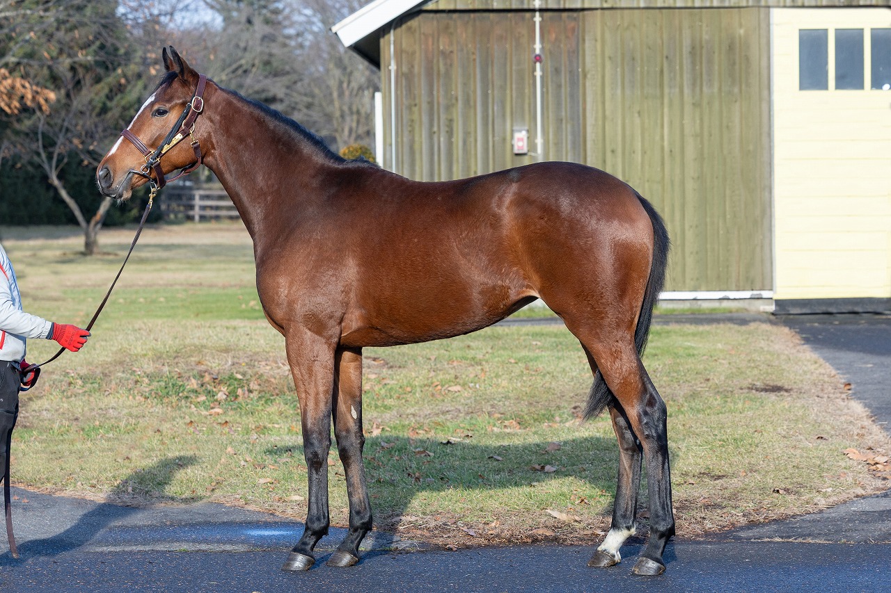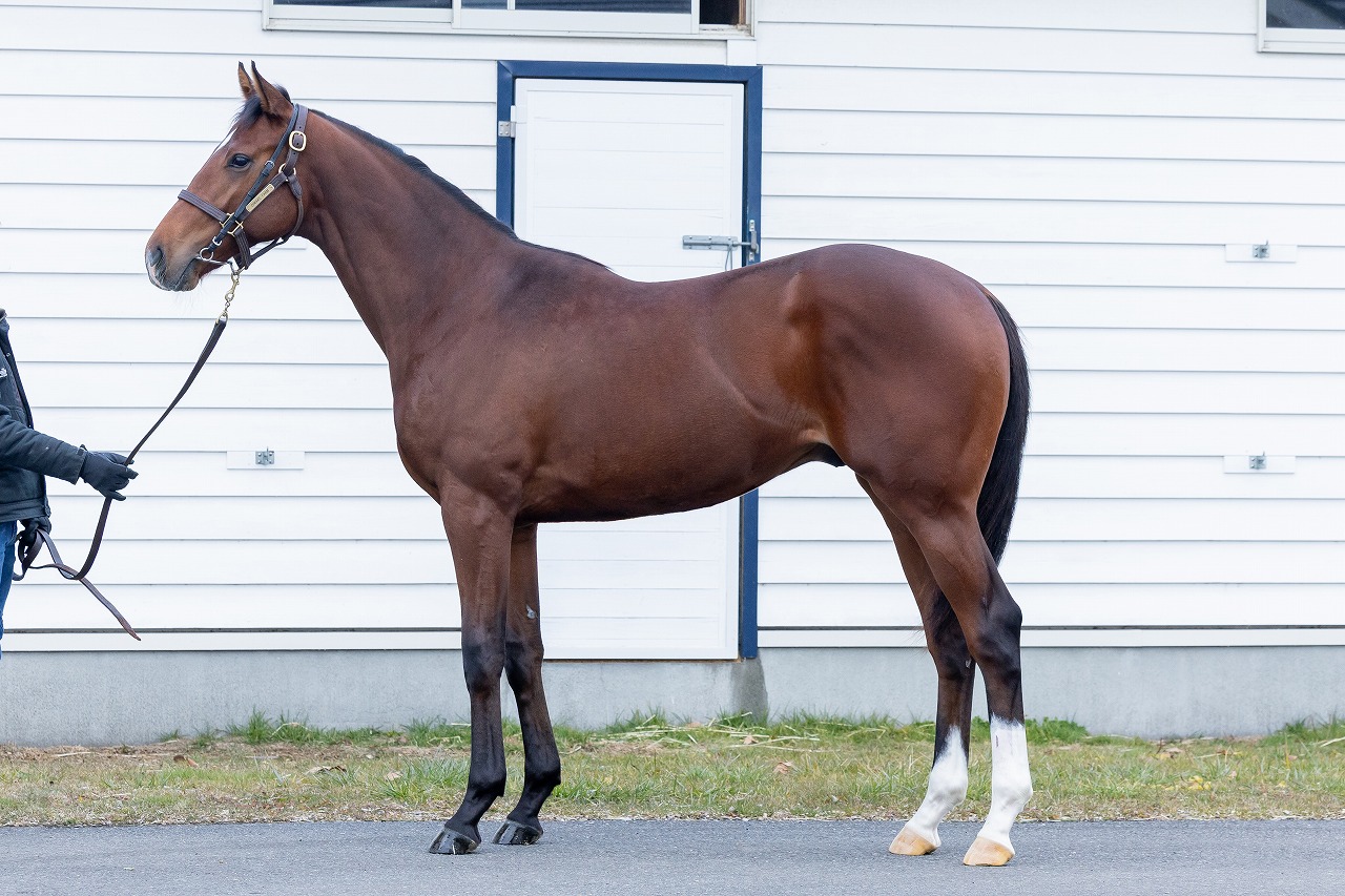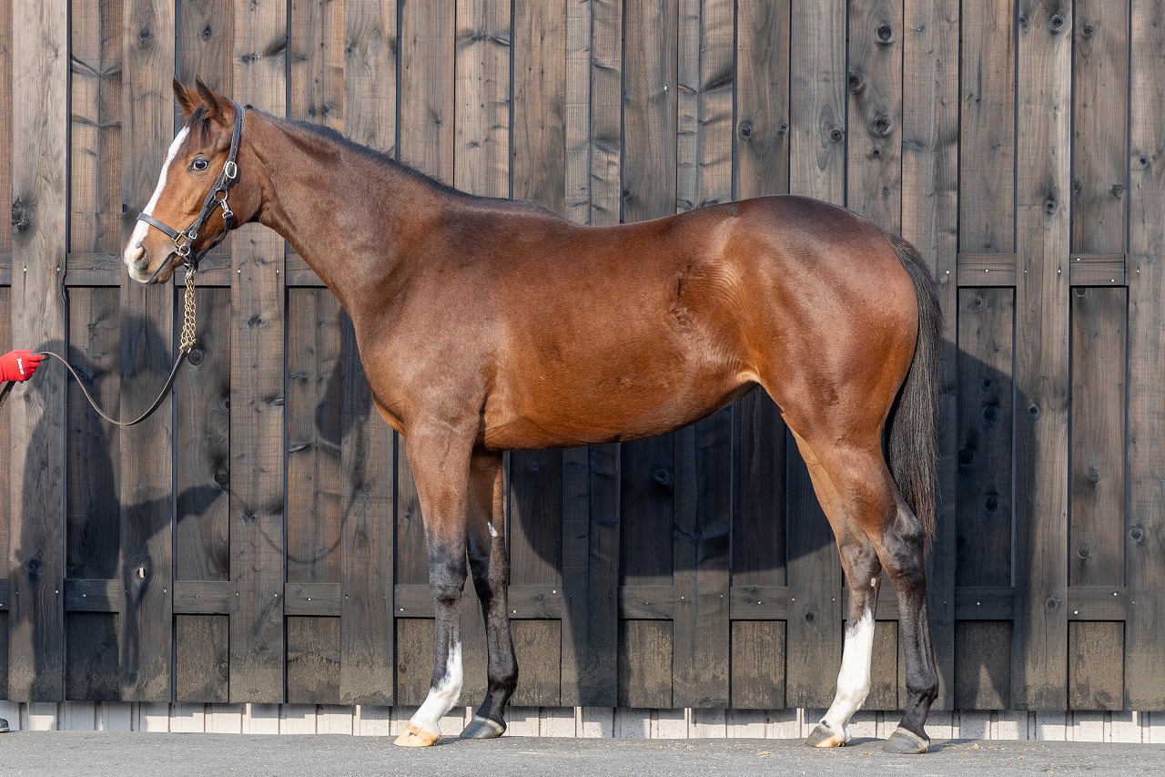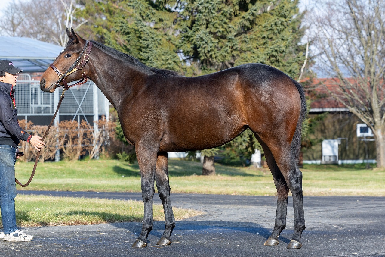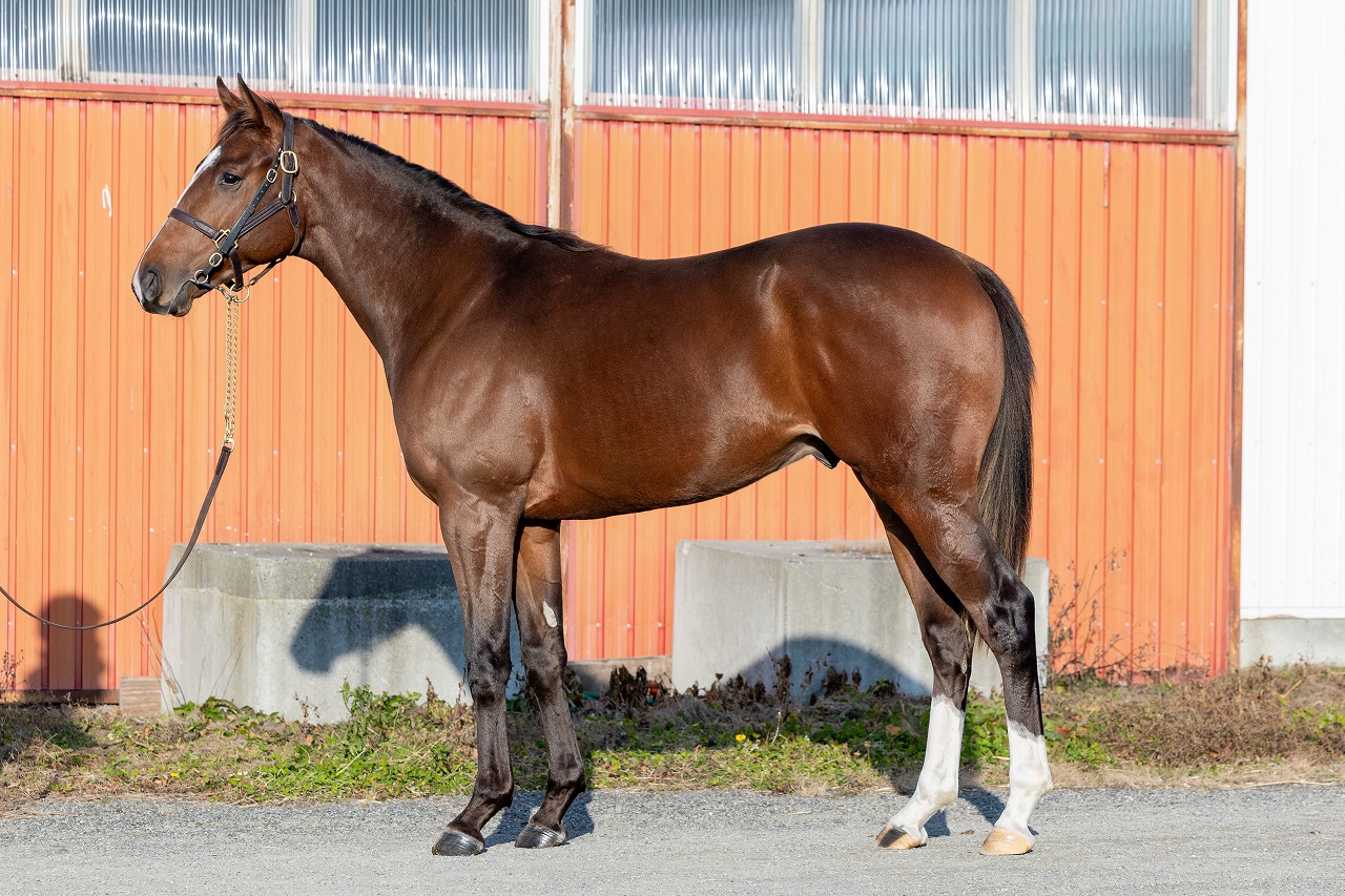 徐々にペースを上げている坂路調教、低酸素環境下でのトレッドミルといったトレーニングをおこなっています。坂路では上がり3ハロンを17秒台前半で駆け上がる時計も出しましたが、少し焦って走る面はあるものの、身のこなしの柔らかい、伸びやかな動きを見せています。やや細身ですが、脚が長く、胴伸びもある、父産駒らしい体型の持ち主。飼い葉喰いに問題はなく、気性も素直です。調教を重ね、腰がパンとしてくれば、走りの中身も、より濃くなってくるはずです。 -