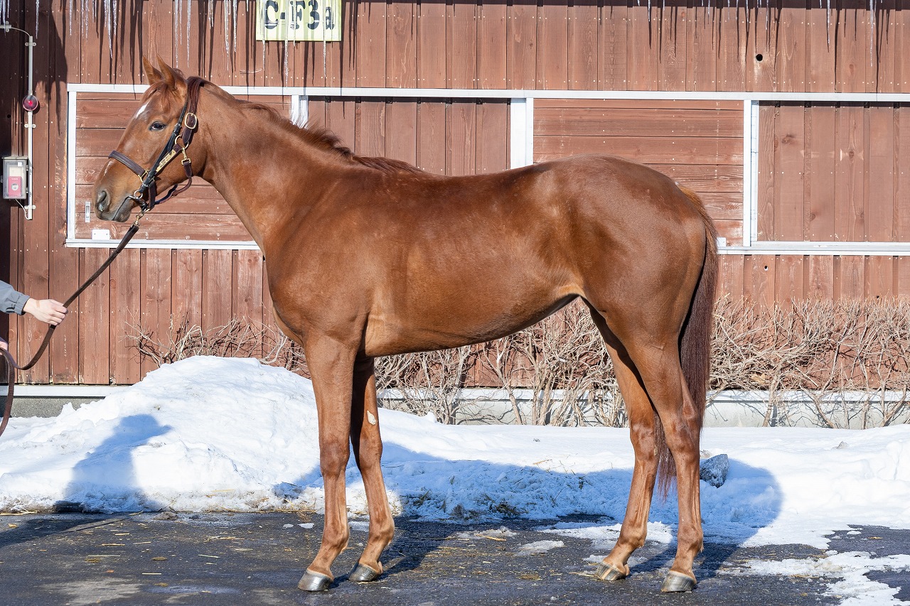 2本目の登坂を3ハロン42秒ペースで駆け上がっていく日も設けた坂路調教、トレッドミルを使用したキャンターといったメニューを継続しています。エピファネイア産駒らしくハミを深く噛む傾向もありますが、折り合い面に不安はなく、仕上がりの早さを感じさせる走りを見せています。良好なコンディションを維持していることもあり、手塚貴久調教師より「3月中旬のトレセン入厩を考えています」とのお話がありました。この後も継続して負荷をかけつつ、移動に向けた体調管理も並行しておこなっていきます。